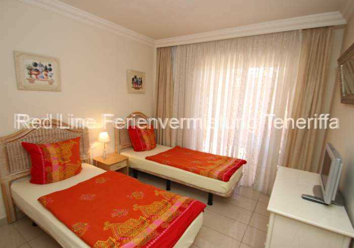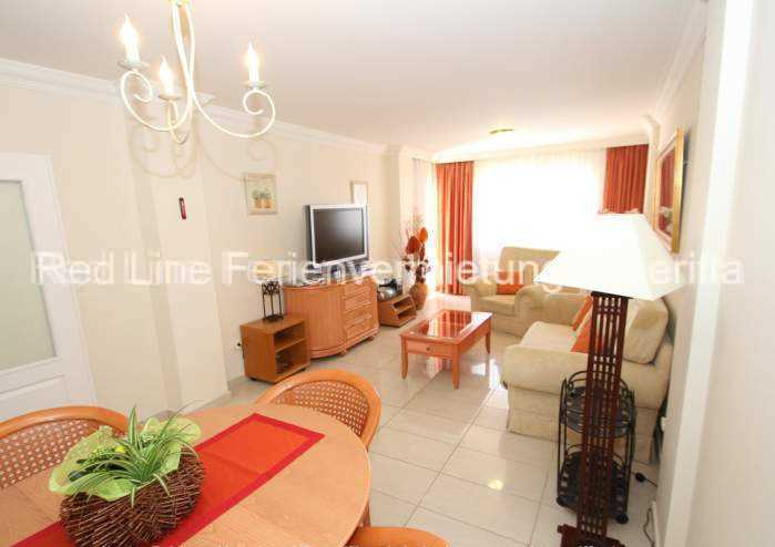 Die Wohnung ist verfügt über ein schönes Wohnzimmer. Hier finden Sie unter anderem ein gemütliches Sofa, ein Fernseher mit Sat-TV und viele Dinge, die die das Urlaubsleben angenehm machen. Die Schlafzimmer – eines mit großem Doppelbett, eines mit zwei Einzelbetten (alle Betten mit Kopfortmatratzen), verfügen über Einbauschränke, die bis zur Decke reichen. 2 Bäder mit Dusche / Wanne, WC, Bidet und Waschtisch, eine Waschmaschine, eine möblierte Sonnenterrasse und eine umfangreich ausgestattete Küche – hier u.a. mit Backofen, Ceranfeld, Mikrowelle, Kühl- Gefrierkombi, Spülmaschine, Kaffeemaschine, Toaster, Wasserkocher und weitere Küchenutensilien – runden dieses wunderbare Angebot ab.